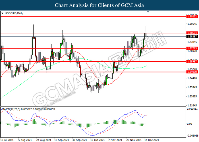 USDCAD, Daily: USDCAD telah didagang dengan lebih tinggi sementara kini menguji di tahap rintangan 1.2870. MACD yang memaparkan momentum bullish mencadangkan pasangan ini untuk melanjutkan keuntungannya selepas ia memecah tahap rintangan tersebut.