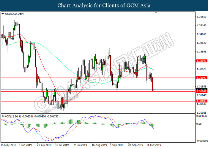 USDCAD, Daily: USDCAD telah didagang dengan lebih rendah sementara kini menguji di tahap sokongan 1.3125. MACD yang memaparkan momentum bearish mencadangkan pasangan ini untuk melanjutkan kerugiannya selepas ia memecah tahap sokongan tersebut.