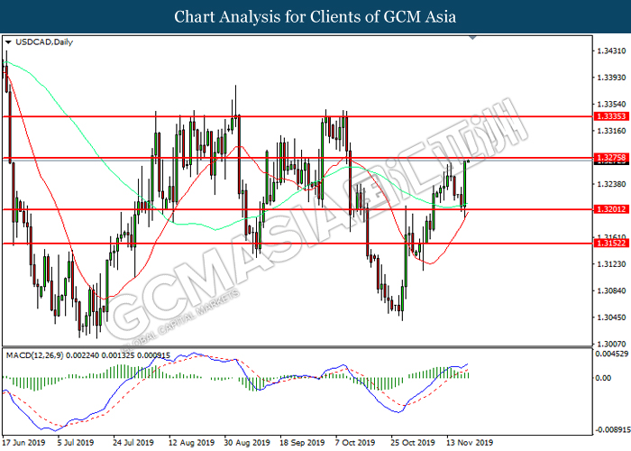 USDCAD, Daily: USDCAD telah didagang dengan lebih tinggi sementara kini menguji di tahap rintangan 1.3275. MACD yang memaparkan momentum bullish mencadangkan pasangan ini untuk melanjutkan keuntungannya selepas ia memecah tahap rintangan tersebut.