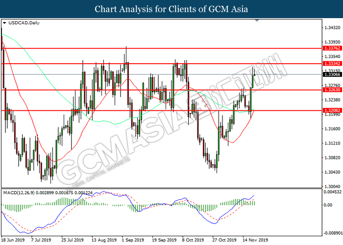 USDCAD, Daily: USDCAD telah didagang dengan lebih tinggi selepas ia memecah tahap rintangan terdahulu 1.3265. MACD yang memaparkan momentum bullish mencadangkan pasangan ini untuk melanjutkan keuntungannya ke arah tahap rintangan 1.3335.