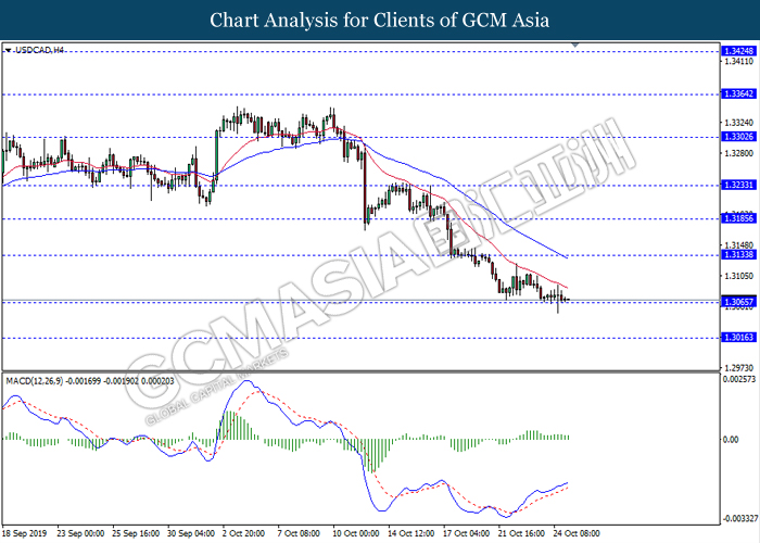 USDCAD, H4: USDCAD telah didagang dengan lebih rendah sementara ia sedang menguji tahap sokongan 1.3065. Namun, MACD yang memaparkan isyarat bias bullish mencadangkan pasangan ini untuk mengalami pembetulan teknikal dalam jangka pendek ke arah tahap sokongan 1.3135.