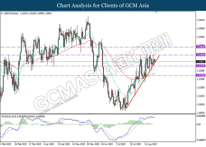 USDCAD, Daily: USDCAD telah didagang dengan lebih rendah sementara menguji pada garisan trend menaik. MACD yang menunjukkan isyarat bias bearish mencadangkan pasangan ini untuk melanjutkan kerugiannya selepas ia berjaya untuk menutupkan lilinnya di bawah garisan trend menaik tersebut.