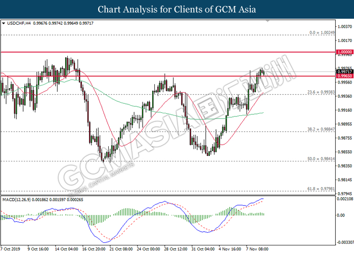 USDCHF, H4: USDCHF telah didagang dengan lebih tinggi selepas ia memecahkan 0.9965. Namun, MACD yang memaparkan penyusutan pada momentum menaik mencadangkan pasangan ini untuk didagang dengan lebih rendah bagi jangka pendek sebagai pembetulan teknikal.