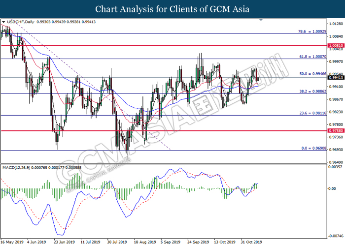 USDCHF, Daily: USDCHF telah didagang dengan lebih tinggi selepas ia melantun daripada tahap rendah. Namun, MACD yang memaparkan momentum bullish yang berkurangan mencadangkan pasangan ini untuk mengalami pembetulan teknikal bagi jangka masa yang pendek dan menuju ke paras yang lebih rendah.