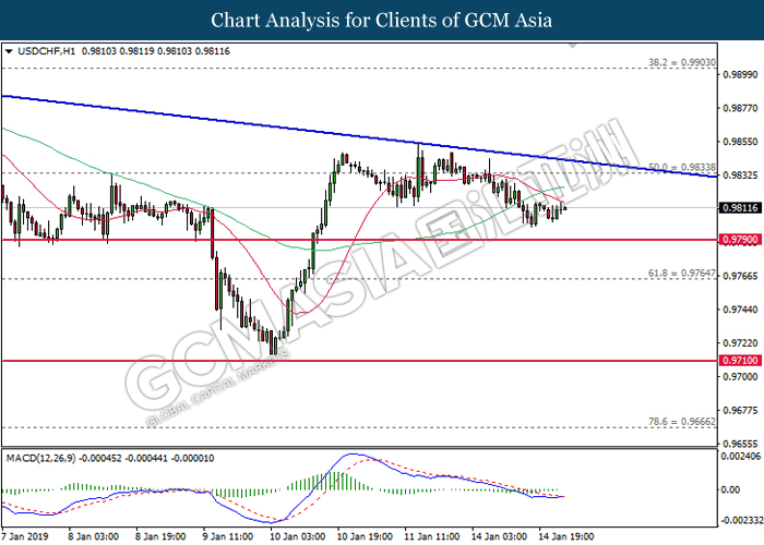 USDCHF, H1: USDCHF telah didagang dengan lebih tinggi selepas ia melantun dari tahap sokongan 0.9790. MACD yang memaparkan pembentukan silang emas mencadangkan pasangan ini untuk meningkat selanjutnya bagi jangka pendek sebagai pembetulan teknikal.