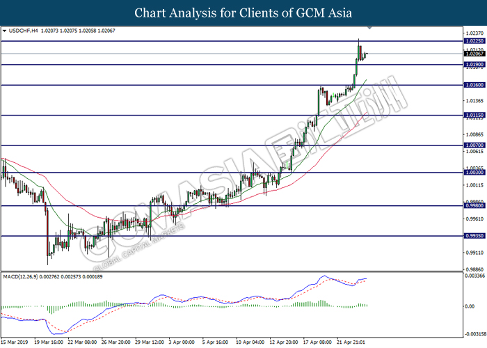 Tahap sokongan: 1.0190, 1.0160