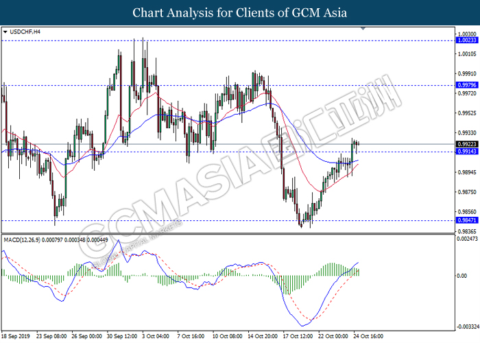USDCHF, H4: USDCHF telah didagang dengan lebih tinggi berikutan dengan pemecahan pada tahap rintangan sebelumnya 0.9915. Namun, MACD yang memaparkan isyarat momentum bullish yang berkurangan mencadangkan pasangan ini untuk didagang dengan lebih rendah sebagai pembetulan teknikal jangka pendek ke arah tahap sokongan 0.9915.