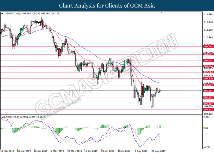 USDJPY, Daily: USDJPY telah didagang dengan lebih tinggi sementara kini menguji di tahap rintangan 106.20. MACD yang memaparkan bias bullish mencadangkan pasangan ini untuk meneruskan keuntungannya selepas pemecahan berlaku di 106.20.