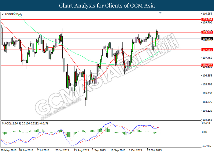 USDJPY, Daily: USDJPY telah didagang dengan lebih rendah selepas ia berundur dari tahap rintangan 109.05. Namun, MACD yang memaparkan momentum bearish yang berkurangan mencadangkan pasangan ini untuk mengalami pembetulan teknikal bagi jangka pendek.