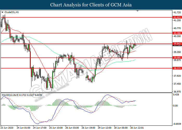 Di pasaran komoditi, harga minyak mentah telah melonjak sebanyak 1.08% kepada $39.78 setong pada masa penulisan berikutan dengan tahap inventori yang semakin berkurang kekal meningkatkan optimisme dalam pasaran. Pasaran tetap bersorak dengan penurunan yang mengejutkan dalam tahap inventori dari API. Selain itu, tahap pematuhan yang tinggi dari Arab Saudi dan negara OPEC yang lain juga meningkatkan sentimen. Pengeluaran dari OPEC telah jatuh ke paras terendah dalam dua dekad. Sebaliknya, harga emas menokok sebanyak 0,05% kepada $1781,49 se troy auns semasa penulisan berikutan dengan kebimbangan COVID-19 terus meningkatkan sentimen penghindaran risiko.