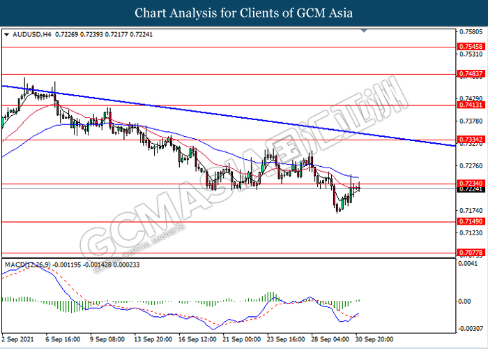 Dolar Australia yang didagang terhadap dolar AS dan pasangan mata wang lain telah meningkat dengan latar belakang data ekonomi yang optimis. Menurut kepada Biro Statistik Australia, data Building Approvals Australia untuk bulan Ogos telah meningkat dengan ketara daripada bacaan sebelumnya sebanyak -8.6% kepada 6.8%. Data tersebut menunjukkan momentum ekonomi yang lebih kuat di rantau ini berikutan dengan kenaikan dalam perbelanjaan pengguna di pasaran perumahan. Selain itu, data China Caixin Manufacturing Purchasing Managers Index (PMI) pada bulan September juga meningkat dengan lebih tinggi daripada bacaan sebelumnya sebanyak 49.2 kepada 50, dan juga melebihi jangkaan pasaran pada 49.5. Data ekonomi China yang meningkat menunjukkan kestabilan aktiviti pembuatan dan meningkatkan prospek permintaan dalam import bahan mentah dari Australia. Data tersebut juga membantu dalam meningkatkan sentimen pasaran terhadap dolar Australia. Sebaliknya, pasangan ini juga mendapat sokongan lebih lanjut dari data pekerjaan AS yang rendah. Data Initial Jobless Claims AS yang lebih teruk daripada jangkaan telah merosot sentimen pasaran terhadap dolar AS susulan kebimbangan mengenai masalah stagnasi. Pada masa penulisan, pasangan AUD/USD melonjak sebanyak 0.06% kepada 0.7227.