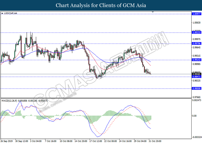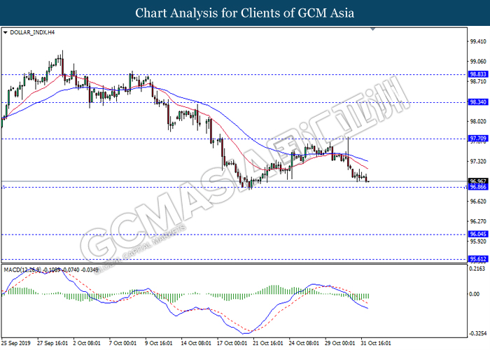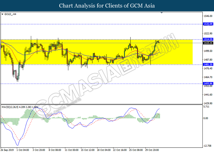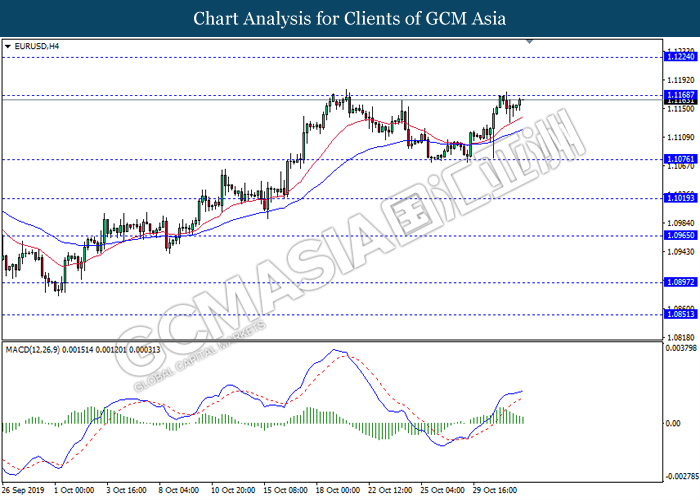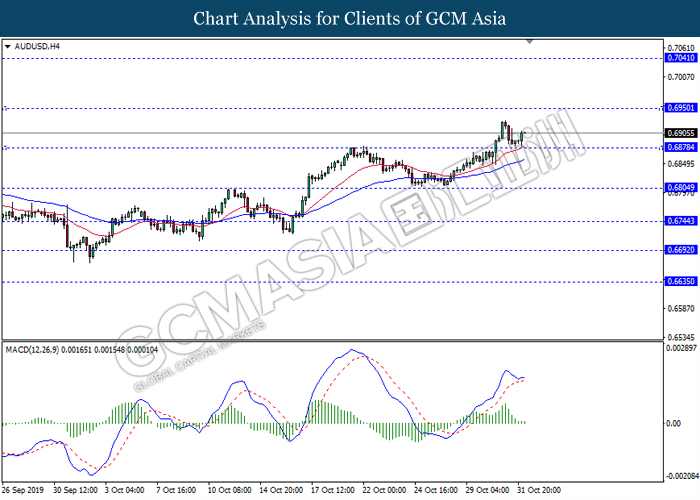 Antipodean, yang merujuk kepada Dolar New Zealand dan Dolar Australia telah melonjak berikutan dengan data optimis yang telah diumumkan dari China. Berdasarkan dengan data ekonomi mengenai aktiviti sektor perkilangan China, ia menunjukkan bahawa aktiviti perkilangan dalam China pada bulan Oktober telah berkembang dengan kadar paling pantas sejak tahun 2017. Data PMI Pembuatan Caixin telah mencapai sebanyak 51.7, lebih tinggi daripada jangkaan ekonomi sebanyak 51.0. Ia menunjukkan bahawa pesanan eksport China telah meningkat serta aktiviti perkilangannya masih berkembang. Selain itu, data ekonomi yang memberangsangkan dari China dijangka meningkat disebabkan oleh penyusutan dalam perang perdagangan dengan Amerika Syarikat, di mana Amerika Syarikat telah mengecualikan 400 daripada produk import China dari tarif baru sementara China perlu membeli lebih banyak produk pertanian dari AS seperti yang dijanjikan. Semasa penulisan, NZD/USD telah meningkat sebanyak 0.33% kepada 0.6430 manakala AUD/USD menokok sebanyak 0.18% kepada 0.6905. Sebaliknya, pasangan USD/CAD telah meningkat sebanyak 0.01% kepada 1.3155 berikutan dengan data GDP Kanada menunjukkan peningkatan sebanyak 0.1%, lebih rendah daripada ramalan sebanyak 0.2%. Data pesimis ini menunjukkan tekanan inflasi Kanada telah bertukar lemah di mana ekonomi dijejaskan oleh ketidakpastian dalam konflik perdagangan antarabangsa serta risiko pertumbuhan global yang perlahan. Ini adalah selaras dengan nada dovish Bank Pusat Kanada (BoC) pada hari Rabu.