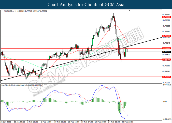 Semasa lewat sesi Asia, dolar Australia yang didagang terhadap dolar AS dan pasangan mata wang lain telah didagang dengan stabil selepas keputusan kadar baru-baru ini dari bank pusat Australia (RBA). RBA telah mengekalkan kadar faedahnya dengan tidak berubah pada paras terendah 0.10% seperti yang dijangkakan secara meluas. Dalam kenyataannya, RBA menyebut bahawa mereka tidak akan meningkatkan kadar sehingga inflasi sebenar berada dalam julat sasaran 2-3%. Di samping itu, RBA juga menyatakan bahawa mereka berkomitmen untuk mengekalkan keadaan dasar kewangan yang longgar sehingga matlamatnya tercapai dan bersiap untuk mengubah pembeliannya mengikut keadaan pasaran. Kesediaan RBA untuk meningkatkan pasaran bon dan penolakan untuk kenaikan kadar kelihatan telah mendorong para pembeli dan menyokong harganya. Pada masa penulisan, AUD/USD meningkat sebanyak 0.03% hingga 0.7757.