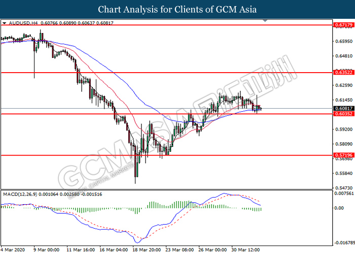 Dalam pasaran komoditi, harga minyak mentah meningkat sebanyak 0.72% ke $21.20 setong susulan dengan peningkatan dalam inventori minyak mentah. Menurut EIA, data Inventori minyak mentah AS meningkat dengan ketara kepada 13.834 juta dari bulan sebelumnya pada 1.623M. Keseluruhan sentimen pasaran minyak mentah kekal lemah kerana ia masih dihantui oleh kesan negatif coronavirus dan pertikaian antara Arab Saudi dan Rusia. Selain itu, harga emas naik 0.05% ke $1591.95 setroy ounce di tengah-tengah kelemahan indeks dolar.