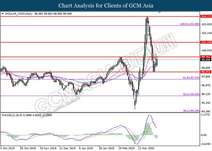 Indeks dolar yang mengukur nilainya terhadap sekumpulan enam mata wang utama merosot selepas satu siri data yang suram telah dibebaskan dari rantau Amerika Syarikat pada hari semalam. Sebagai penunjuk yang digunakan secara meluas untuk meneliti kesihatan pasaran buruh, data ADP Nonfarm Payroll dibebaskan pada -27k, mencatatkan kejatuhan terbesar sebelum kesan negatif daripada wabak Covid-19 bermula merosot ekonomi kerana laporan ini hanya sehingga 12 Mac. Sejak penyebaran coronavirus bermula, ekonomi AS telah terjejas dengan ketara dan pasaran buruh telah menunjukkan kejatuhan terbesar menurut kepada data tuntutan pengangguran awal. Walaupun data ADP dilaporkan dalam bacaan sedikit lebih kuat daripada ramalan ekonomi pada -150k, namun ia tidak memberi momentum kenaikkan harga terhadap indeks dolar oleh kerana ramalan pasaran terhadap kerugian dalam bulan Mac adalah jauh lebih buruk, berjuta-juta orang dalam AS telah memohon tuntutan pengangguran. Walau bagaimanapun, kerugian mata wang dolar terhad berikutan dengan data yang positif daripada sektor perkilangan dibebaskan. Menurut Institute of Supply Management, ISM Manufacturing PMI merekodkan penurunan lebih rendah daripada ramalan, iaitu 49.1 dan ramalannya adalah 45.0. Semasa penulisan, indeks dolar turun 0.05% ke 99.50.