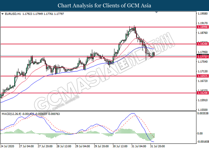 Di pasaran komoditi, harga minyak mentah menyusut 0.47% ke $40,00 setong semasa penulisan susulan dengan peningkatan kebimbangan pelabur terhadap prospek permintaan minyak. Menurut tinjauan daripada Reuters, gelombang kedua Covid-19 yang berpotensi masih kekal sebagai ancaman utama yang akan membatasi kadar pemulihan pasaran komoditi hitam ini. Selain itu, harga emas naik 0.35% ke $1982.95 setroy auns kerana peningkatan kes virus mendorong perilaku pelabur untuk mengelakkan risiko ketidakpastian.