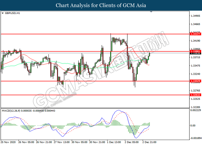Semasa lewat sesi akhir Asia, indeks dolar yang didagang terhadap sebakul enam pasangan mata wang utama telah mencapai paras terendah 2 tahun dan terus melanjutkan kejatuhannya berikutan dengan jangkaan terhadap permulaan vaksinasi COVID-19 akan menyokong aset berisiko. Mengikuti perkembangan vaksin yang terbaru, U.K telah meluluskan vaksin COVID-19 yang dikembangkan oleh Pfizer dan BioNTecH. U.K juga menyatakan bahawa mereka akan mula menyuntik vaksin kepada individu-individu yang paling berisiko pada awal minggu depan. negara-negara lain seperti Perancis juga dijangka akan mengikuti jejak UK. Dengan jangkaan terhadap permulaan vaksinasi secara besar-besaran, para pelabur mendapat keyakinan mereka bahawa prospek ekonomi global dapat pulih ke tahap sebelumnya. Pada masa yang sama, rangsangan AS juga terus mempengaruhi sentimen di mana para pelabur menjangkakan bahawa para penggubal undang-undang akan mencapai kesepakatan untuk akhir sekali dengan kedua-dua pihak menghadapi tarikh akhir 11 Disember untuk meluluskan anggaran $ 1.4 trilion atau menghadapi risiko menutup kerajaan. Pada masa penulisan, indeks dolar jatuh sebanyak 0.12% kepada $ 90.93.