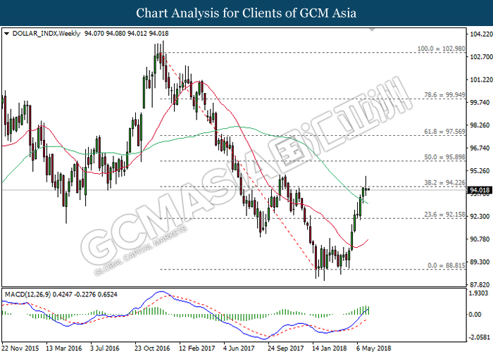 DOLLAR_INDX, Weekly: Indeks dolar telah melanjutkan keuntungannya selepas ia menutup niaga di atas garisan 60-MA (hijau). Namun, penyusutan pada momentum menaik dari MACD histogram mencadangkan indeks tersebut untuk didagang dengan lebih rendah pada jangka pendek sebagai pembetulan teknikal sebelum meneruskan bias bullish.