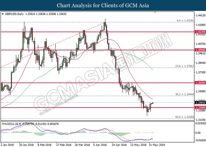 GBPUSD, Daily: GBPUSD telah meneruskan kenaikannya selepas ia melantun dan menutup niaga di atas sasaran 1.3300. MACD histogram yang mula untuk membentuk corak silang emas mencadangkan pasangan ini untuk meningkat selanjutnya selepas ia menutup niaga di atas garisan 20-MA (merah).