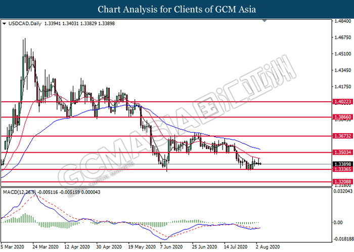 USDCAD, Daily: USDCAD telah didagang dengan lebih tinggi selepas ia melantun dari tahap sokongan di 1.3335. MACD yang memaparkan isyarat momentum bearish yang berkurangan mencadangkan pasangan ini untuk melanjutkan keuntungannya dan menuju ke arah tahap rintangan di 1.3505.