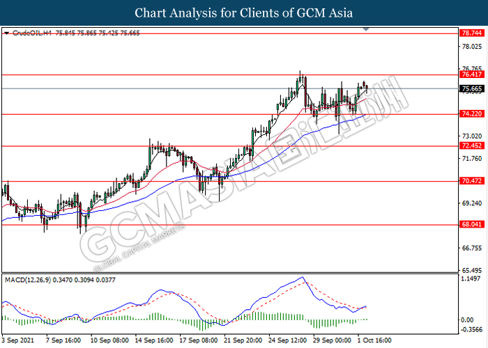 Di pasaran komoditi, harga minyak mentah turun sebanyak 0.25% kepada $75.52 pada masa penulisan sementara pasaran menunggu untuk mesyuarat OPEC terkini. Beberapa negara telah menekan OPEC untuk meningkatkan produksi dan menurunkan harga kerana permintaan bahan bakar terus pulih. Para pengeluar mempertimbangkan untuk menambahkan lebih banyak bekalan daripada yang dinyatakan dalam perjanjian OPEC +, menurut kepada sumber OPEC. Walau bagaimanapun, sebarang kenaikan akan berlaku mulai bulan November kerana jumlah bulan Oktober telah ditentukan pada pertemuan OPEC + lalu dalam bulan September. Sebaliknya, harga emas meningkat sebanyak 0.08% kepada $ 1759.05 se troy auns semasa penulisan susulan dengan penurunan dolar.