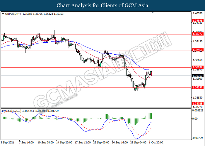 Mata wang paun sterling yang didagang terhadap dolar dan pasangan mata wang lain telah meningkat susulan dengan data ekonomi yang optimis baru-baru ini dari UK. Menurut kepada Markit, data Manufacturing PMI UK pada bulan September telah memberi bacaan sebanyak 57.1, melebihi jangkaan pasaran sebanyak 56.3. Sebilangan besar daripada para pelabur telah memberikan jangkaan yang negatif terhadap data tersebut kerana UK mengalami krisis Brexit yang merangkumi kekurangan bahan mentah, komoditi dan kesukaran untuk mengambil pekerja baru yang cenderung merugikan sektor pembuatan di UK. Namun, data tersebut membuktikan bahawa industri pengeluaran terus berkembang walaupun dengan situasi tersebut tetapi dengan kadar yang lebih perlahan. Walaupun begitu, keuntungan mungkin akan dihadkan susulan dengan keengganan Perdana Menteri Britain, Boris Johnson untuk melonggarkan sekatan imigresen yang boleh menyelesaikan krisis bahan bakar dan makanan baru-baru ini yang disebabkan oleh kekurangan pemandu lori. Menurut kepada Reuters, Perdana Menteri Britain Boris Johnson menekankan bahawa beliau tidak akan melonggarkan imigrasi untuk mendorong pertumbuhan upah di wilayah tersebut dan meningkatkan pekerjaan pekerja rumah tangga. Pada masa penulisan, GBP/USD meningkat sebanyak 0.03% kepada 1.3536.