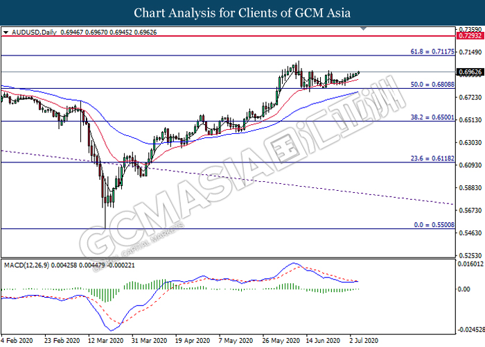 Semasa lewat sesi Asia, dolar Aussie yang didagang terhadap dolar AS dan pasangan mata wang lain tetap berada dalam tawaran berikutan dengan pengeluaran data tahap kedua yang positif. Menurut kepada University of Melbourne – Fakulti Ekonomi dan Perdagangan, data Australia’s TD Securities meningkat dengan lebih banyak daripada sebelumnya dengan bacaan sebanyak 0.7% berbanding dengan 0.1% sebelumnya. Pada masa yang sama, data ANZ Job Advertisements juga melonjak dalam margin yang besar dengan bacaan sebanyak 42% berbanding dengan bacaan sebelumnya sebanyak 0.5%. Di sisi lain, sentimen pasaran juga mengambil petunjuk dari Presiden AS Donald Trump di mana beliau enggan menghormati lonjakan terbaru dalam jumlah koronavirus baru-baru ini. Berita tersebut yang membebani dolar juga membantu memberi sokongan kepada Aussie. Pada masa penulisan, AUD/USD telah meningkat sebanyak 0.29% kepada 0.6955.