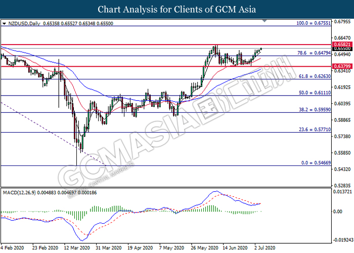 NZDUSD, Daily: NZDUSD telah didagang dengan lebih tinggi selepas ia memecah tahap rintangan sebelumnya di 0.6480. MACD yang memaparkan momentum bearish yang berkurangan mencadangkan pasangan ini untuk melanjutkan keuntungannya dan menuju ke arah tahap rintangan di 0.6580.