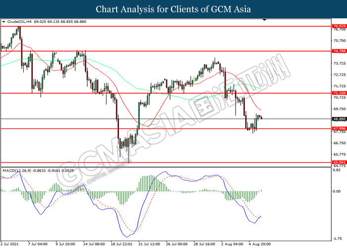 Bagi pasaran komoditi, harga minyak mentah meningkat sebanyak 0.17% ke $69.15 setong semasa penulisan. Pasaran minyak mentah telah didagang dengan lebih tinggi di tengah pembetulan teknikal selepas penurunan yang ketara pada awal minggu. Sebaliknya, harga emas telah menyusut sebanyak 0.15% ke $ 1801.85 se troy auns semasa penulisan di tengah-tengah pelabur tetap optimis terhadap momentum ekonomi di Amerika Syarikat. Walaupun, untuk saat ini pelabur akan terus meneliti kemas kini terbaru mengenai data pekerjaan penting malam ini untuk menerima isyarat perdagangan lebih lanjut untuk komoditi emas.