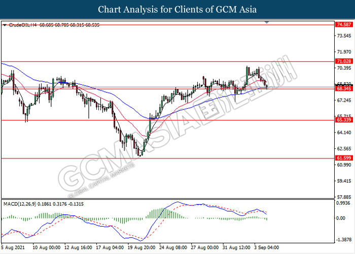 Di pasaran komoditi, harga minyak mentah melanjutkan kerugiannya dan turun sebanyak 0.84% kepada $68,67 setong berikutan dengan berita berikutan dengan penurunan harga minyak Arab Saudi. Gergasi minyak negara Saudi Aramco memberitahu pelanggan dalam satu kenyataan pada hari Ahad bahawa ia akan mengurangkan harga Oktober untuk semua gred minyak mentah yang dijual ke Asia, wilayah pembelian terbesarnya, sekurang-kurangnya $ 1 setong. Pemotongan harga tersebut adalah lebih besar dari yang dijangkakan, menurut kepada tinjauan Reuters di kalangan kilang minyak Asia. Sebaliknya, harga emas turun sebanyak 0.03% kepada $1827.73 se troy auns pada masa penulisan berikutan dengan lantunan dolar.