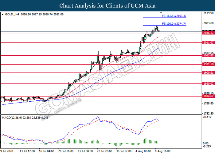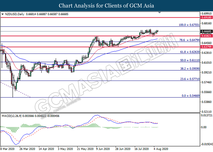 Di pasaran komoditi, harga minyak mentah telah melanjutan kerugiannya dan turun sebanyak 0.09% kepada $41,77 setong berikutan dengan ketidaktentuan rangsangan AS dan kelemahan dalam permintaan bahan bakar kekal membebani pasaran. Setakat ini, kemunculan semula jangkitan koronavirus tetap menjadi tumpuan utama yang mendorong sentimen tersebut. Sebaliknya, kekurangan perkembangan dalam perbincangan antara Rumah Putih dan Demokrat mengenai pakej rangsangan juga menambah alasan yang lebih lanjut untuk penjualan. Sebaliknya, harga emas telah menyusut sebanyak 0.47% kepada $2053.32 se troy auns pada masa penulisan berikutan dengan pengambilan untung setelah kenaikan yang berterusan baru-baru ini.