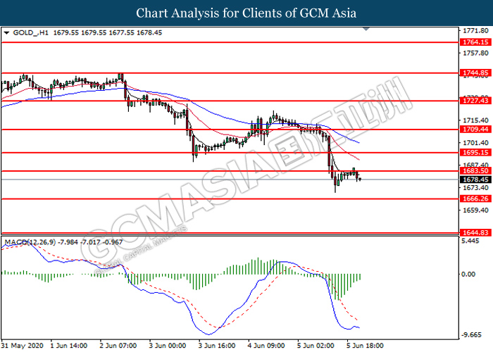 Di pasaran komoditi, harga minyak mentah meningkat sebanyak 2.93% ke $40.10 setong setelah OPEC dan sekutu bersetuju untuk melanjutkan pelan pemotongan pengeluaran minyaknya pada hari Sabtu yang lalu. Dalam persidangan video ini, ahli OPEC dan bukan OPEC bersetuju untuk melanjutkan pengeluaran minyak mereka selama satu bulan hingga akhir Julai 2020. Selain itu, harga emas menyusut 0.38% ke $1678.75 setroy auns susulan dengan data perkerjaan yang positif telah menaikkan daya tarikan dolar AS.