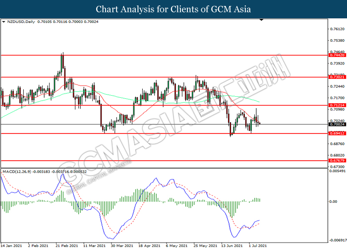 NZDUSD, Daily: NZDUSD telah didagang dengan lebih rendah selepas ia berundur dari tahap rintangan 0.7120. MACD yang memaparkan momentum bullish yang berkurangan mencadangkan pasangan ini untuk melanjutkan kerugiannya ke arah tahap sokongan 0.6940.