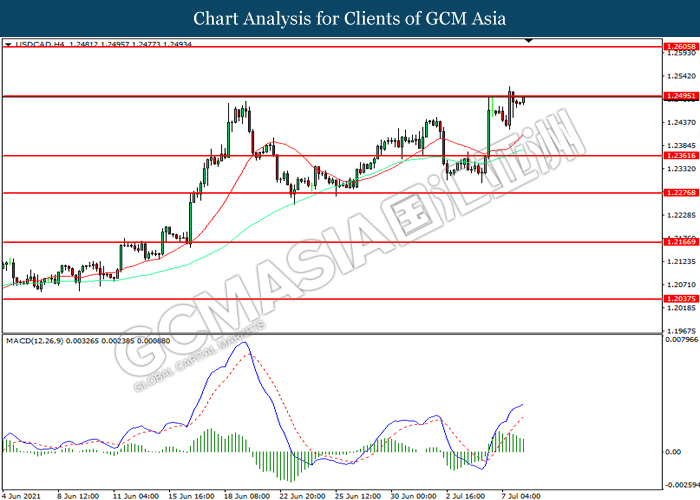 USDCAD, H4: USDCAD telah didagang dengan lebih tinggi sementara kini menguji di tahap rintangan 1.2495. MACD yang memaparkan momentum bullish yang berkurangan mencadangkan pasangan ini untuk mengalami pembetulan teknikal bagi jangka pendek.