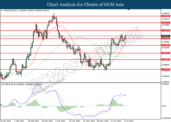 USDCHF, Daily: USDCHF telah didagang dengan lebih tinggi selepas ia memecah tahap rintangan terdahulu 0.9230. Namun, MACD yang memaparkan momentum bullish yang berkurangan mencadangkan pasangan ini untuk mengalami pembetulan teknikal bagi jangka pendek.