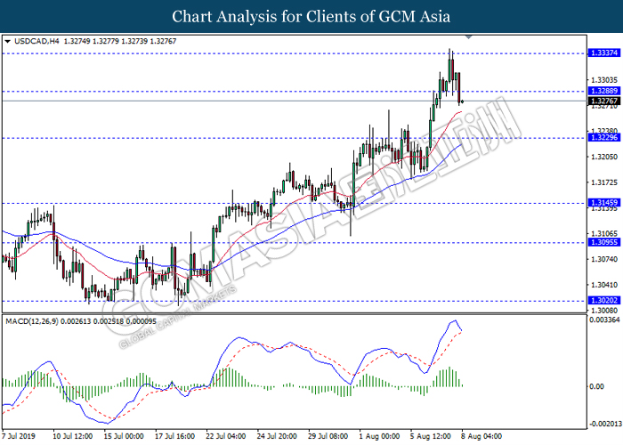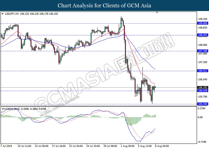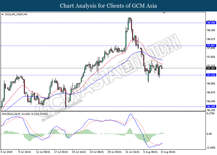 Sentimen pasaran kekal ditekan oleh acara yang dovish terutamanya peningkatan kebimbangan terhadap penyusutan pertumbuhan ekonomi global yang mendorong kebanyakan bank pusat untuk memotong kadar faedahnya. Penyusutan pertumbuhan global menambah buruk selepas pusingan perundingan perdagangan terkini mengakibatkan kepada pengumuman tarif tambahan oleh Presiden AS Donald Trump ke atas barangan China yang berkesan pada 1hb September. Sebahagian analis menyatakan bahawa pengumuman tarif tersebut bertujuan untuk memberi tekanan kepada pihak China untuk mempercepatkan pencapaian perjanjian. Namun, analis yang lain pula menyatakan tindakan tersebut adalah disebabkan oleh sikap ‘protectionism’ Trump. Walaubagaimanapun, China telah menyatakan bahawa mereka tidak ingin untuk berperang dengan AS tetapi mereka tidak takut kepadanya juga. Kejadian tersebut telah meningkatkan ketegangan perdagangan dan memanjangkan tempoh perang perdagangan. Ketegangan diantara dua negara tersebut telah menjejaskan ekonomi global dan menyebabkan bank pusat seperti RBNZ dan RBA untuk melanjutkan kelonggaran dasar kewangan mereka bagi menyokong pertumbuhan ekonominya. Prospek pasaran FX terkini kekal dovish serta menyebabkan para pelabur untuk memasuki ke dalam pasaran aset selamat sementara mereka menunggu isyarat yang lebih lanjut di dalam pasaran seperti potensi perkembangan perundingan perdagangan sebelum 1hb September. Indeks dolar telah menyusut sebanyak 0.03% ke 97.32 sementara pasangan USD/JPY menurun sebanyak 0.13% ke 106.11 semasa penulisan.