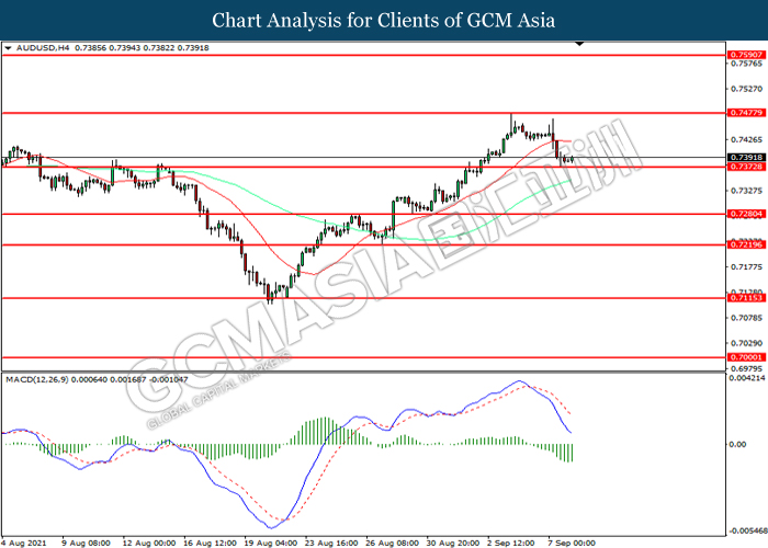 Dolar Australia telah mencatat kerugiannya selepas Reserve Bank Australia terus melaksanakan rancangan pelonggaran dasar monetari yang agresif semalam. Bank Pusat Australia telah mengekalkan kadar faedah pada 0.10% sementara program pembelian bon pada kadar $ 4 bilion seminggu hingga sekurang-kurangnya Februari 2022. Menurut kepada pernyataan RBA, pemulihan ekonomi Australia terganggu oleh peningkatan jumlah wabak Delta dan sekatan berkaitan ekonomi aktiviti. KDNK untuk negara Australia dijangkakan akan menurun pada suku September dan kadar pengangguran akan meningkat lebih tinggi dalam beberapa bulan mendatang. Bank pusat memutuskan untuk mengekalkan keadaan monetari yang agresif untuk menyokong kembali kepada tujuan pekerjaan penuh di Australia dan inflasi yang sesuai dengan sasarannya. Walaupun begitu, para pelabur akan terus memberi tumpuan mereka terhadap data ekonomi yang penting dari Australia dan juga perkembangan mengenai Covid-19 untuk menjangkakan pergerakan ke atas pasangan tersebut. Semasa penulisan, AUD/USD telah menyusut sebanyak 0.10% ke 0.7395.