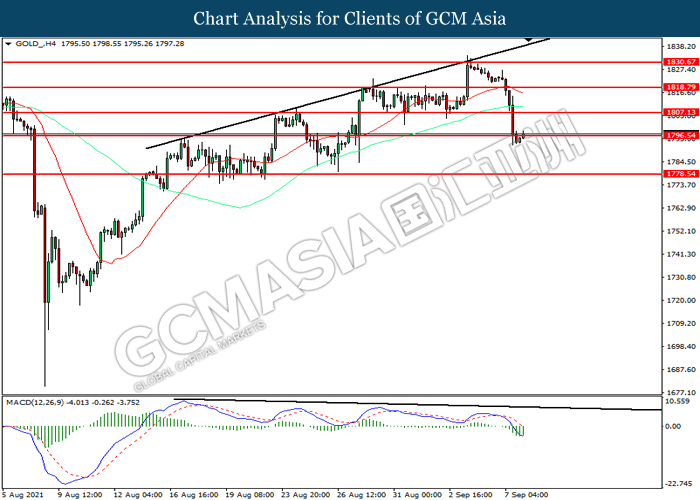Bagi pasaran komoditi, harga minyak mentah telah menurun sebanyak 0.10% ke $68,65 se tong semasa penulisan susulan dengan kebimbangan mengenai permintaan minyak yang lemah di Amerika Syarikat dan Asia di tengah peningkatan jumlah varian Covid-19. Sebaliknya, harga emas telah menyusut sebanyak 0.10% ke $ 1798.15 se troy auns semasa penulisan di tengah pembetulan teknikal setelah ia mencapai paras tertinggi baru-baru ini.