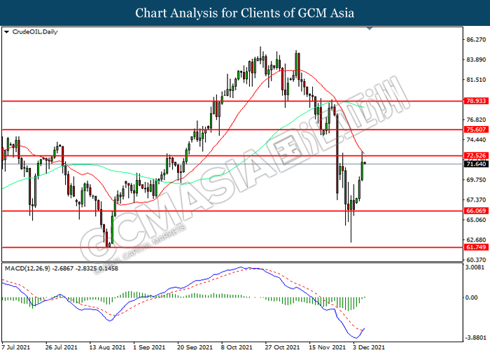 Bagi pasaran komoditi, harga minyak mentah telah meningkat sebanyak 0.26% ke $72.40 setong semasa penulisan. Harga minyak mentah telah melanjutkan keuntungannya selepas data inventori yang bullish telah dibebaskan. Menurut kepada Institut Petroleum Amerika, Stok Minyak Mentah Mingguan API A.S. memberi bacaan sebanyak -3.089M, lebih baik daripada ramalan pasaran pada 2.093M. Sebaliknya, harga emas telah didagang dengan rata pada $1784.12 se troy auns setakat ini susulan dengan para pelabur masih menunggu pemangkin selanjutnya daripada keputusan dasar monetari dari Bank Pusat AS.