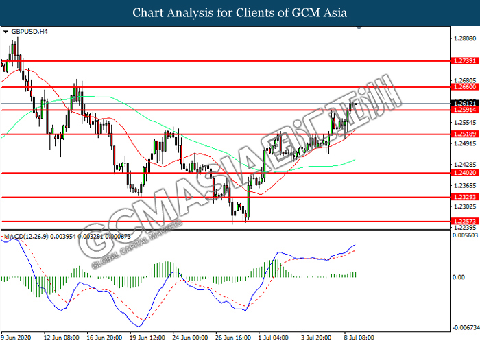 Paun Sterling telah melanjutkan keuntungannya selepas Canselor UK Rishi Sunak membuat pengumuman mengenai rancangan rangsangan ekonomi untuk memerangi krisis koronavirus semalam. Menurut kepada Reuters, Rishi Sunak menegaskan bahawa kerajaan Inggeris akan memberikan subsidi tambahan kepada majikan untuk mengupah pekerja kembali ke pekerjaan mereka. Selain itu, beliau juga mengulangi bahawa pemerintah UK akan mengurangkan Value-Added-Tax (VAT) untuk perbelanjaan di hotel, tempat wisata, restoran dan memberikan subsidi sementara kepada orang yang memberikan subsidi kepada orang yang makan di luar bagi meningkatkan permintaan pasaran ke atas sektor perkhidmatan. Rangsangan ekonomi tersebut telah meningkatkan prospek optimisme ke atas perkembangan ekonomi di UK, yang selanjutnya mencetuskan permintaan pasaran ke atas Paun Sterling. Walau bagaimanapun, Paun Sterling telah mengehadkan keuntungannya susulan dengan para pelabur tetap khuatir terhadap mesyuarat post-Brexit yang akan bermula pada minggu ini. Justeru itu, pada masa kini para pelabur masih perlu memberi pemantauan ke atas perkembangan rundingan Brexit di antara UK dan Eropah untuk menerima isyarat dagangan yang lanjutnya. Semasa penulisan, GBP/USD telah mencatat keuntungannya sebanyak 0.04% ke 1.2612.