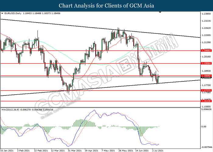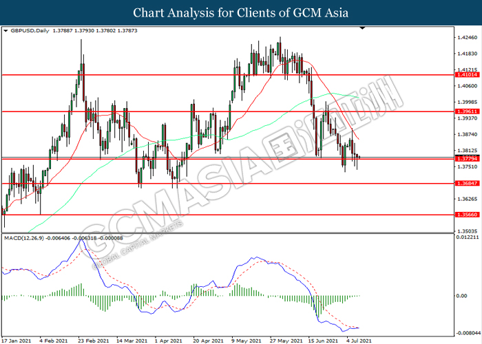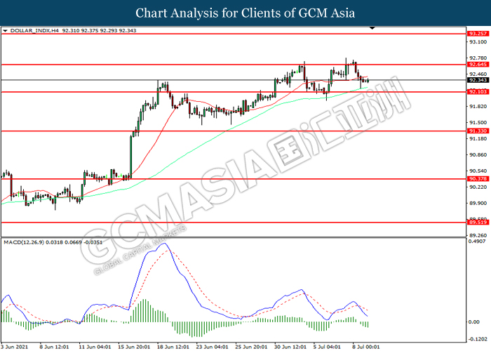 Indeks Dolar yang didagang terhadap sebakul enam pasangan mata wang utama telah menyusut dengan latar belakang data ekonomi bearish dari rantau Amerika Syarikat. Menurut kepada Department of Labor, Initial Jobless Claims AS telah meningkat dari bacaan sebelumnya sebanyak 371K ke bacaan sebanyak 373K, lebih buruk daripada ramalan pasaran pada 350K, yang menunjukkan bahawa pemulihan pasaran buruh dari pandemi Covid-19 di AS adalah masih lemah. Walau bagaimanapun, Dolar AS telah mengehadkan kerugiannya susulan dengan sentimen hawkish sebelumnya dari Federal Reserve. Jajak pendapat Reuters meramalkan bahawa Federal Reserve akan mengumumkan strategi untuk mengurangi pembelian asetnya pada bulan Ogos atau September. Walaupun kebanyakan meramalkan pengurangan pertama untuk program pembelian bon akan disambung semula awal tahun depan. Para pelabur akan terus memberi tumpuan kepada data ekonomi terkini dan kemas kini Federal Reserve untuk mengukur pergerakan kemungkinan dolar AS. Semasa penulisan, Indeks Dolar menyusut sebanyak 0.04% ke 92.40.