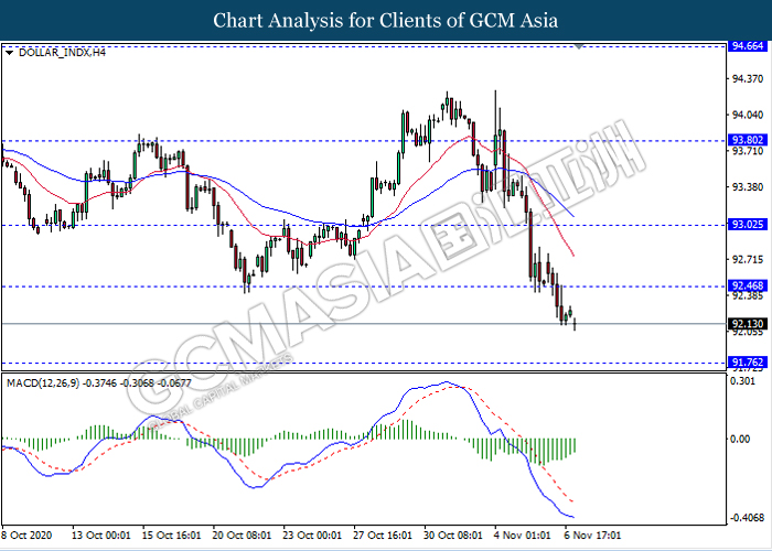 Di pasaran komoditi, harga minyak mentah mendapat = semula momentum dan meningkat sebanyak 2.04% kepada $ 38.17 setong semasa penulisan berikutan dengan prospek terhadap presiden Biden. Harga minyak mentah telah pulih setelah Joe Biden telah memenangi jawatan presiden A.S. dan meningkatkan selera risiko serta mengimbangi kebimbangan mengenai kesan terhadap permintaan bahan bakar dari wabak koronavirus yang semakin teruk. Kemenangan Biden boleh mendorong rangsangan yang lebih besar yang dapat membantu menyokong ekonomi dan meningkatkan penggunaan bahan bakar. Sebaliknya, harga emas melonjak sebanyak 0.26% kepada $ 1955.59 se troy auns pada masa penulisan di tengah-tengah penurunan dolar yang berterusan.