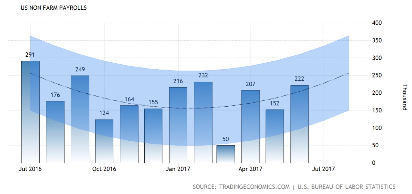 Menurut kepada Jabatan Buruh A.S., ekonomi mereka telah menambah sebanyak 222,000 pekerjaan bagi bulan Jun, lebih tinggi daripada ramalan ekonomis sebanyak 179,000. Selain itu, bacaan bagi bulan April dan Mei telah disemak semula untuk menunjukan tambahan sebanyak 47,000 pekerjaan telah dijana dari bacaan sebelumnya.