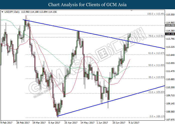 USDJPY, Daily: USDJPY telah memecah keluar dari paras atas segi tiga menyempit dan ia memberi isyarat kepada pertukaran arah aliran untuk meningkat selanjutnya. Kedua-dua garisan MA yang masih menyempit dan menuju ke atas mencadangkan USDJPY untuk melanjutkan kenaikannya ke sasaran di 114.75.