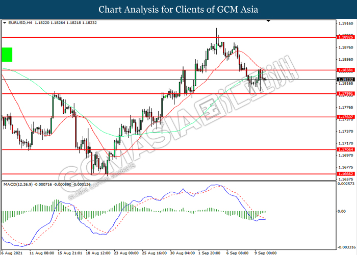 Pasangan EUR/USD menyusut berikutan Bank Pusat Eropah melepaskan nada dovish mereka semalam. Menurut kepada pernyataan dasar monetari, Bank Pusat Eropah telah mengekalkan dasar monetarinya tetapi memilih untuk memperlahankan kadar proses pembelian bon di bawah Pandemik Emergency Purchase Programe (PEPP). Jawatankuasa Dasar Monetari memilih untuk mengekalkan kadar faedah mereka untuk operasi pembiayaan semula utama pada 0%, kemudahan pinjaman marginal pada 0.25% dan kemudahan deposit pada -0.5%. Bank pusat tersebut juga mengulangi bahawa mereka akan terus melaksanakan pelonggaran dasar monetari yang agresif sehingga inflasi menjadi stabil pada 2% dalam jangka masa sederhana. Dari segi inflasi, kadar inflasi dari Eropah telah mencapai tahap tertinggi dalam satu dekade pada 3% untuk bulan Ogos, mencetuskan kebimbangan yang lebih lanjut bagi ECB mengenai bahaya inflasi yang berterusan dan bukannya “sementara”. Beberapa penganalisis berspekulasi bahawa ECB akan mengumumkan pengurangan pakej rangsangan agresifnya pada bulan Disember untuk memerangi risiko inflasi yang tinggi. Semasa penulisan, EUR/USD telah menyusut sebanyak 0.04% ke 1.1825.