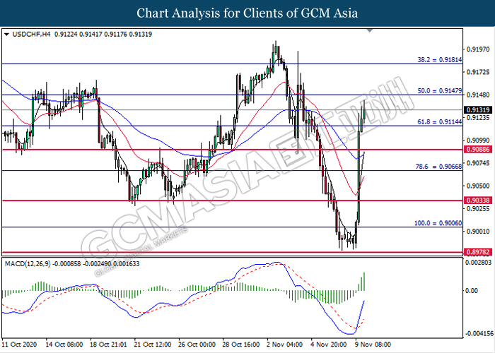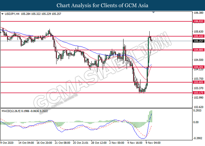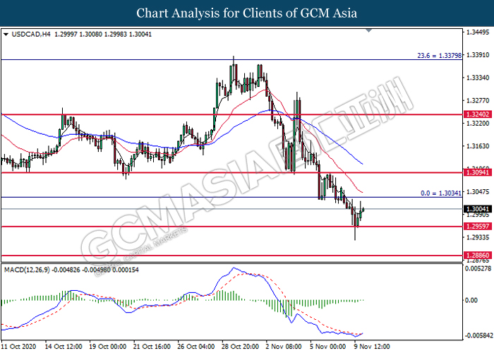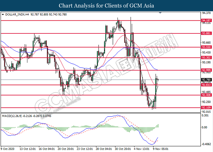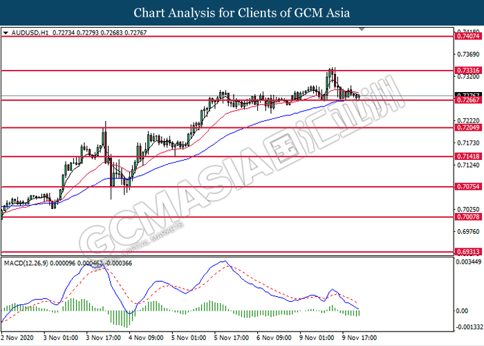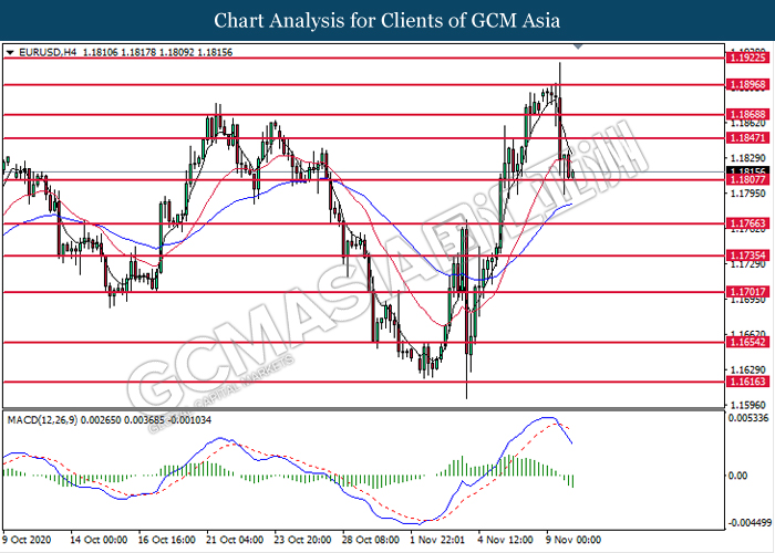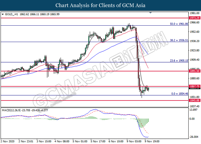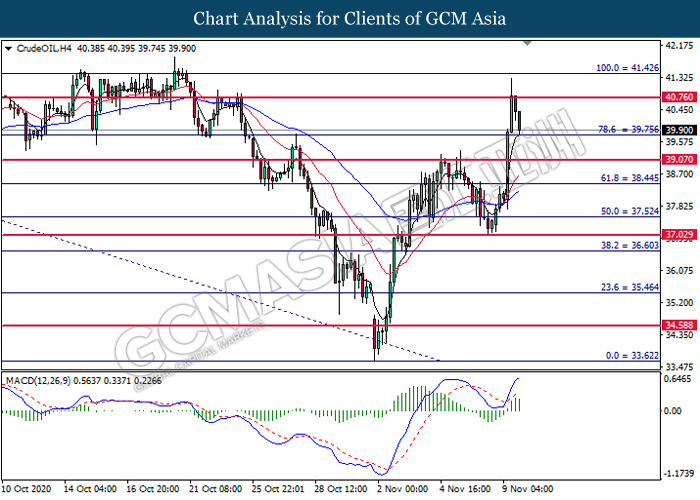 Di pasaran komoditi, harga minyak mentah melonjak 0.05% ke $40.10 setong kerana hasil positif dari perkembangan vaksin meningkatkan sentimen pasaran komoditi hitam ini. Dengan jangkaan vaksin akan dilahirkan dalam masa terdekat, permintaan minyak global dijangka pulih dengan cepat dan oleh itu menaikkan harga minyak mentah. Selain itu, harga emas menyusut 0.10% ke $1861.00 setroy auns kerana selera pelabur terhadap risiko melonjak di tengah-tengah hasil perkembangan vaksin yang memberangsangkan.