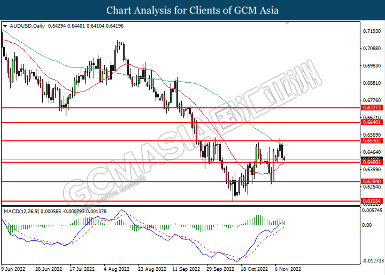 Tahap sokongan: 0.6400, 0.6285