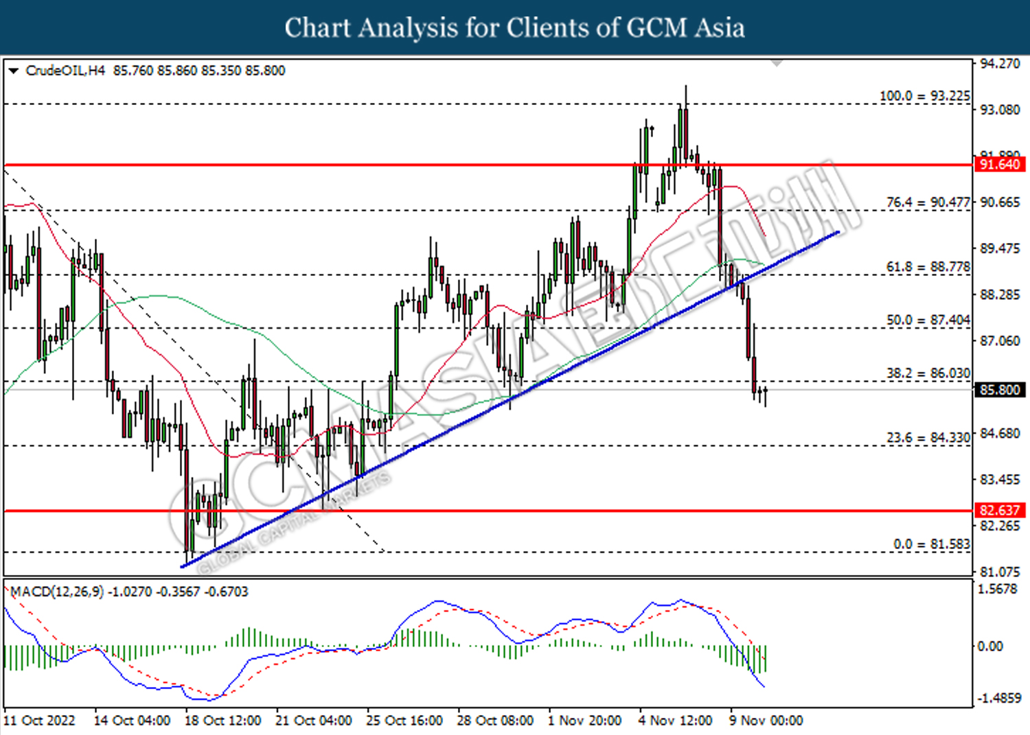 Tahap sokongan: 84.35, 82.65