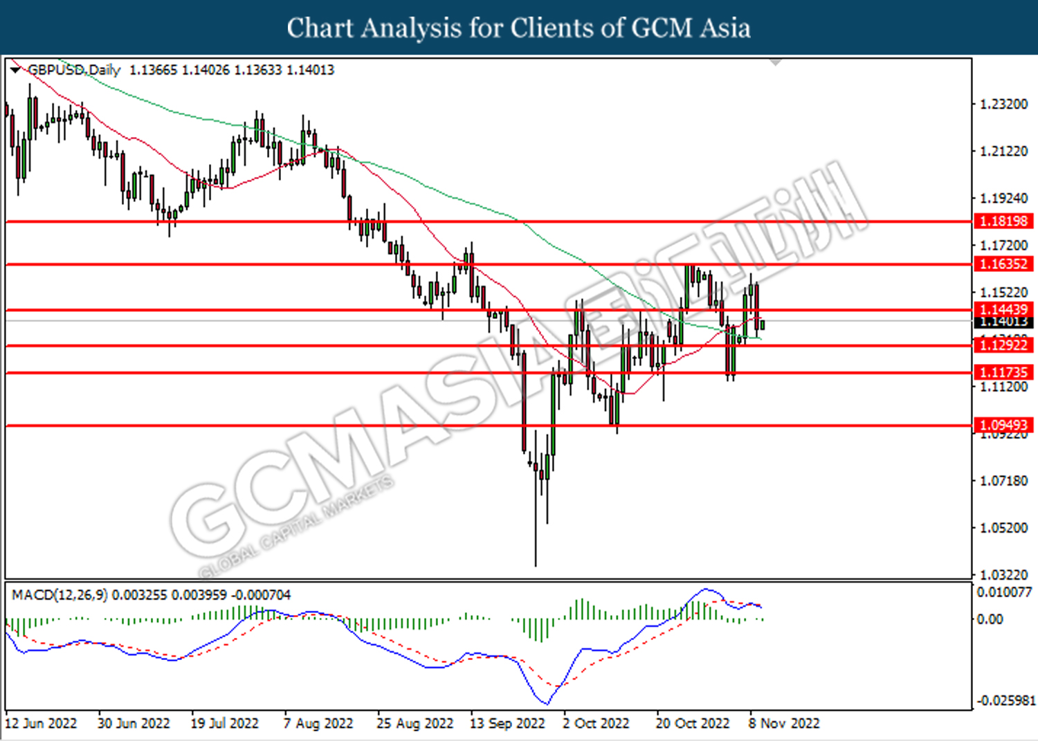 GBPUSD, Daily: GBPUSD telah didagang dengan lebih rendah selepas ia memecah tahap rintangan sebelumnya di 1.1445. Namun, MACD yang memaparkan momentum bearish yang berterusan mencadangkan pasangan ini untuk melanjutkan kerugiannya dan menuju ke tahap sokongan di 1.1290.