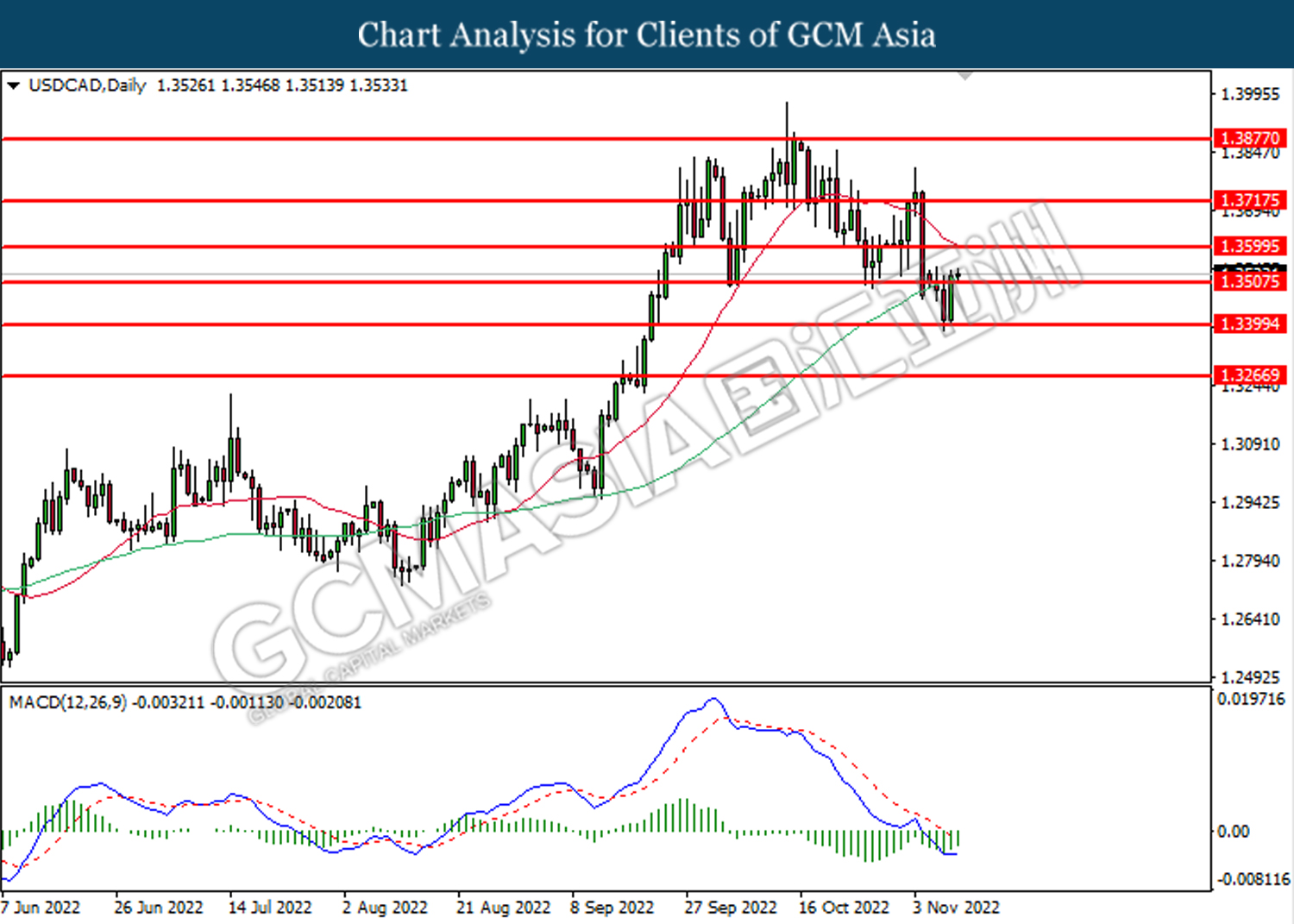 Tahap sokongan: 1.3505, 1.3400